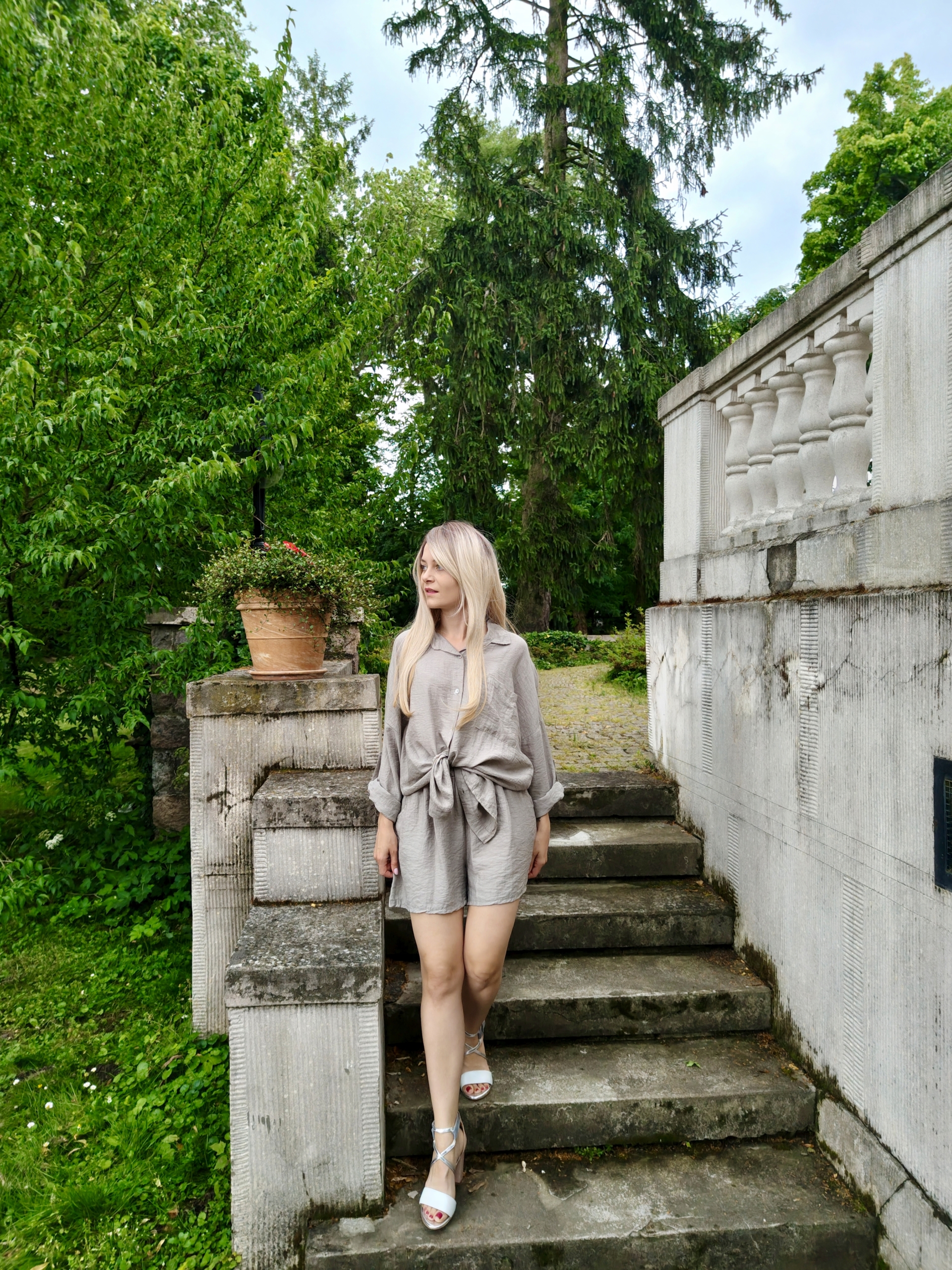 Stylowy komplet Sicilia w kolorze fango to idealna propozycja na cieplejsze dni – łączy wygodę i elegancję w nowoczesnym wydaniu. W skład zestawu wchodzą krótkie spodenki oraz koszula z dłuższym rękawem, który można łatwo podpiąć do długości 3/4 – to praktyczne rozwiązanie, które sprawdzi się w różnych warunkach pogodowych. Komplet wykonano z wysokiej jakości materiałów: 60% wiskozy, 20% lnu oraz 20% nylonu. Dzięki temu tkanina jest lekka, przewiewna i przyjemna dla skóry, a jednocześnie zachowuje odpowiednią strukturę i trwałość. Kolor fango – stonowany, ziemisty odcień – dodaje całości eleganckiego i naturalnego charakteru. To uniwersalny zestaw, który świetnie sprawdzi się zarówno na co dzień, jak i podczas wyjazdów czy letnich spotkań. Można go nosić razem lub osobno, tworząc wiele stylowych kombinacji.