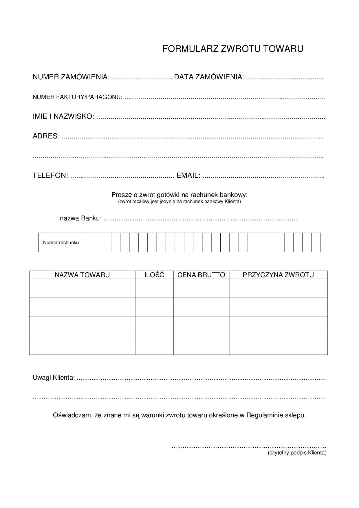 - Do przesyłki należy dołączyć paragon oraz formularz zwrotu,
